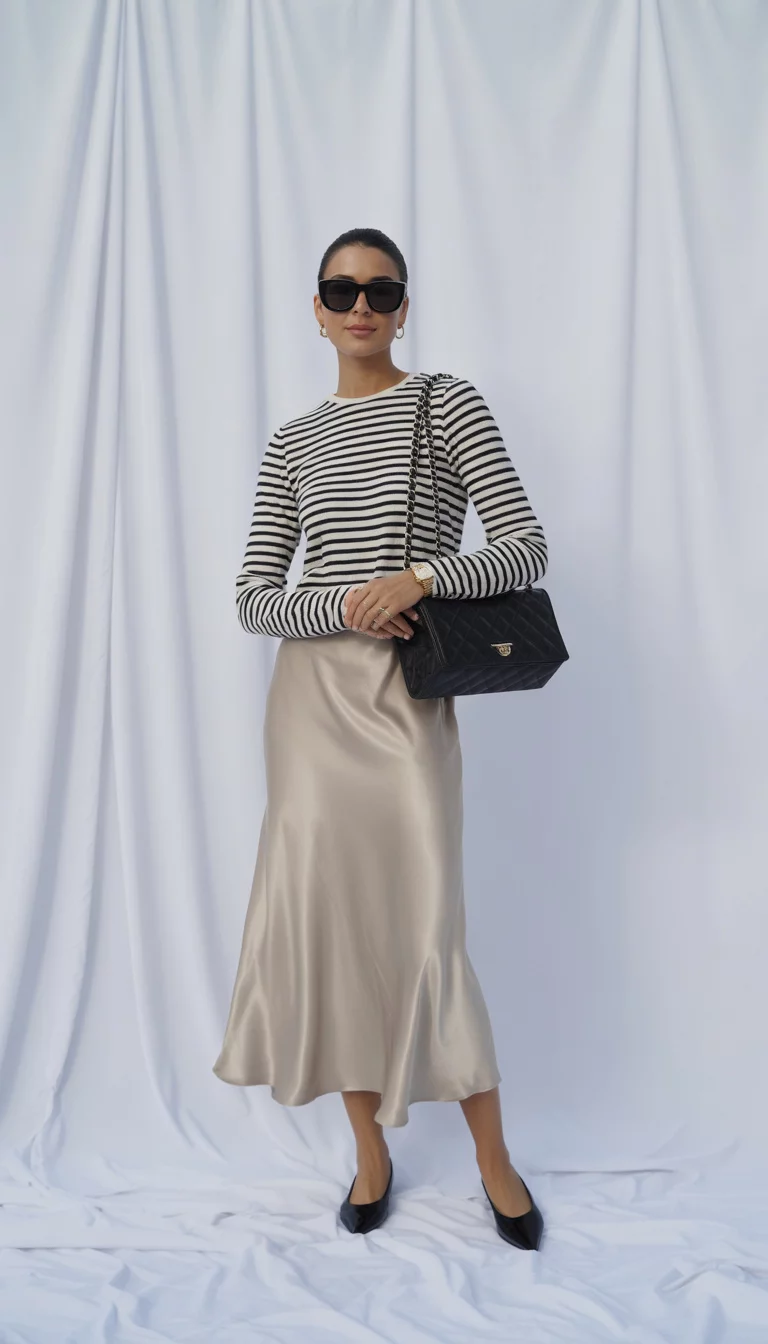 Striped Knitwear And Silk Midi Skirts