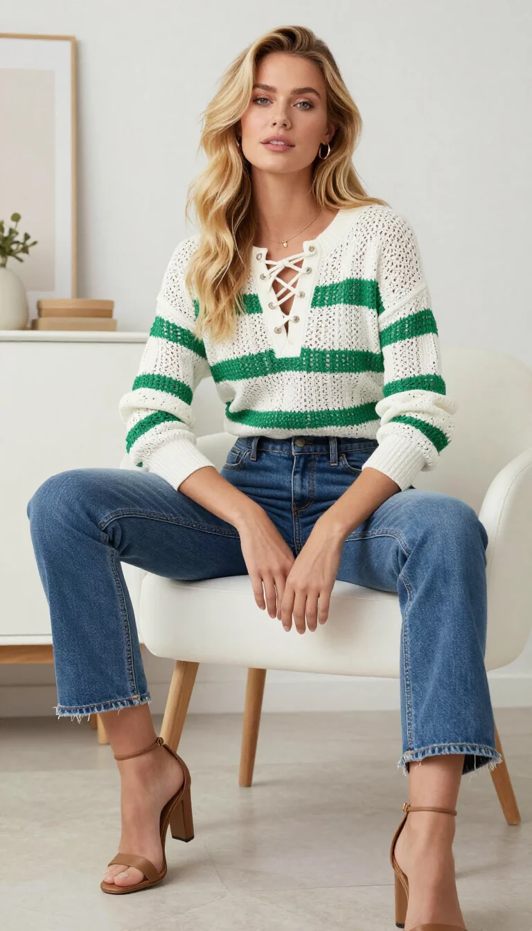 Lace Up Sweaters With Cropped Flared Denim
