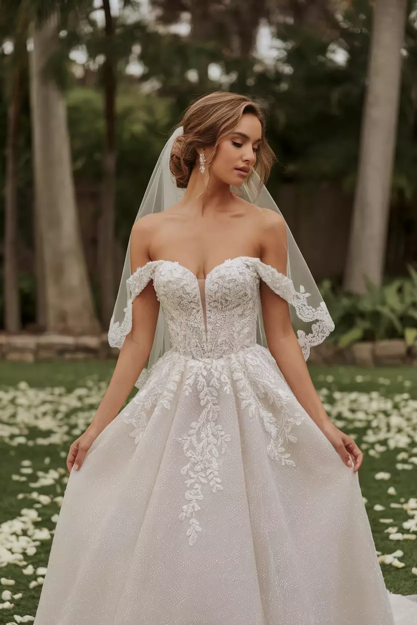 Off-the-Shoulder Wedding Dress with Detachable Skirt