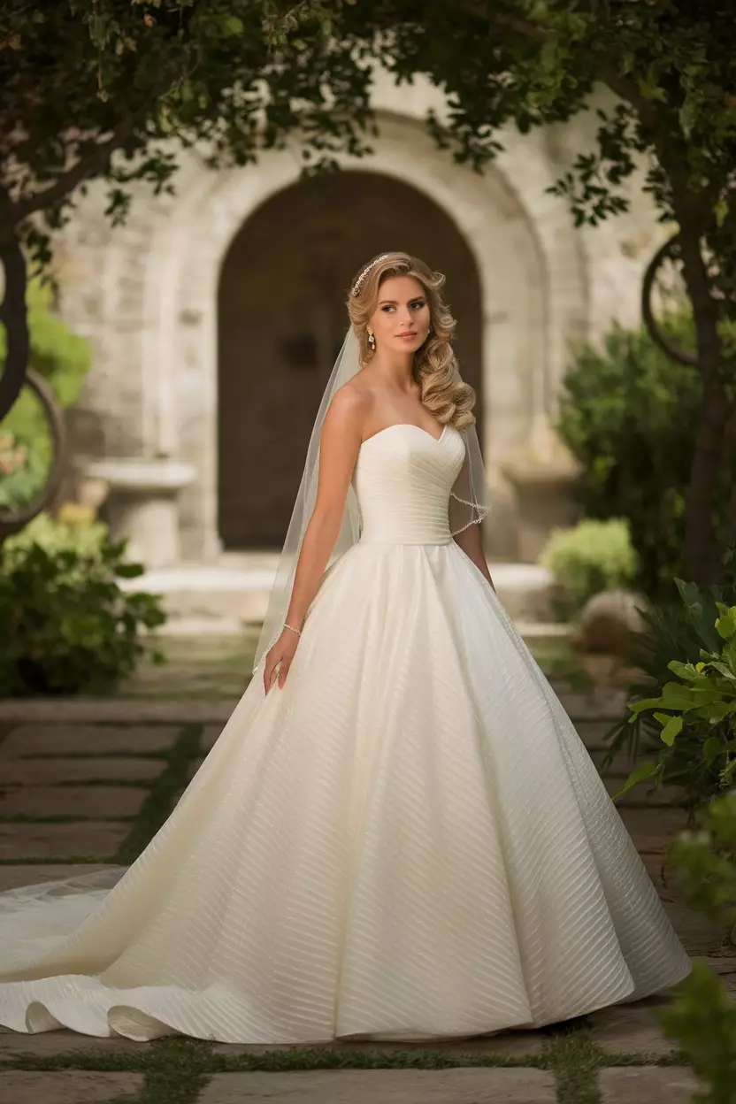 Strapless Ivory Ball Gown Wedding Dress with Train