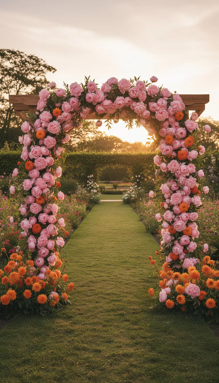 You should consider using seasonal blooms like peonies and dahlias to create a lush, fragrant welcome.