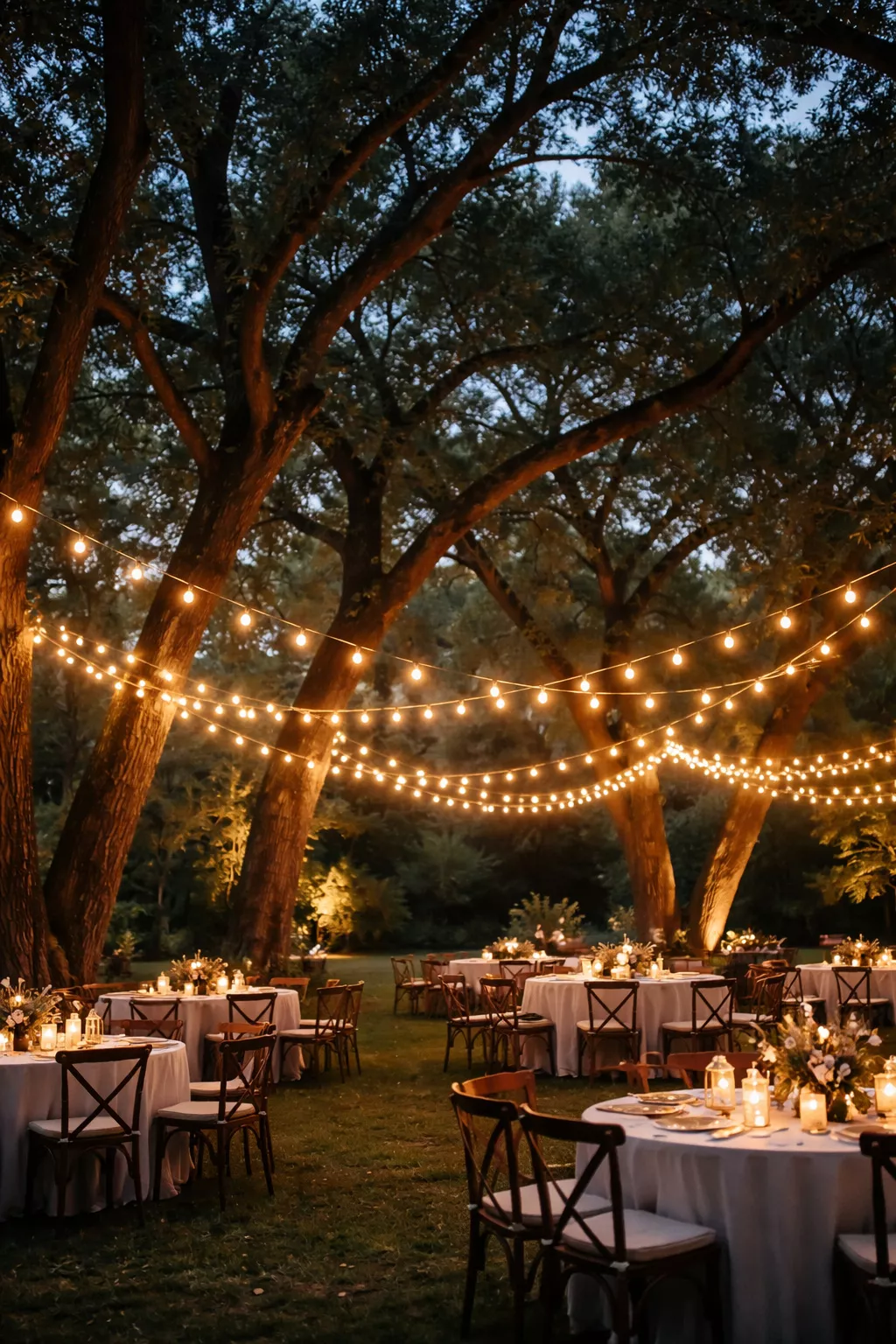 Draping warm white LED bulbs across tree branches or pergolas creates an immediate sense of intimacy.