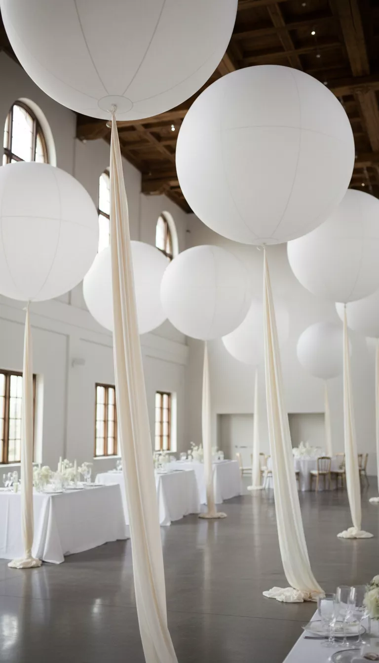 Large, round balloons in neutral colors like matte white or soft grey fill up space very well and draw the eye up.