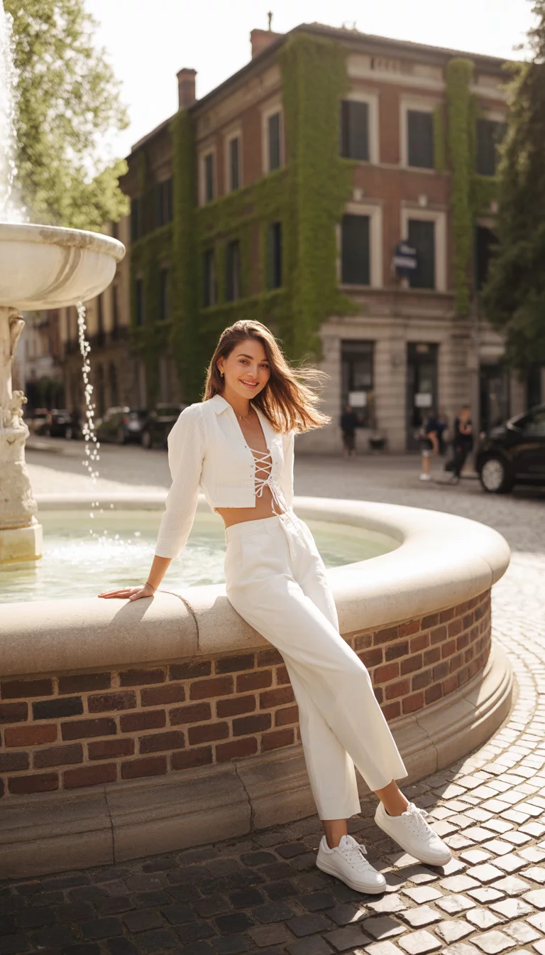 This look is playful and youthful, making it perfect for a day of exploring new cafes or meeting friends for a casual outdoor lunch.