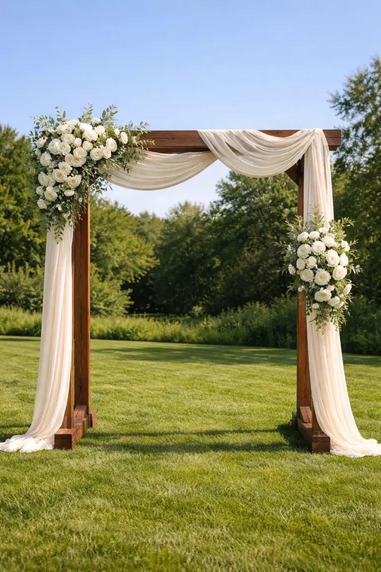 A sturdy wooden arbor provides the perfect frame for your vows and looks far better than a bare field.