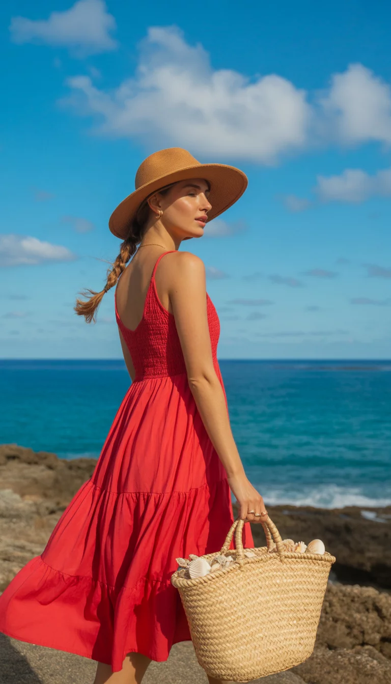 Vibrant Red Sundress And Straw Hat