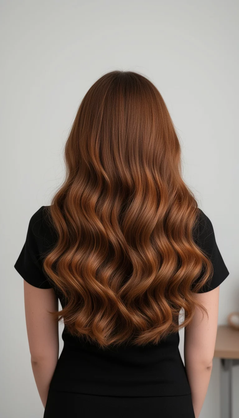 You should choose a voluminous blowout with large flips to showcase the vibrant copper and red reflections.