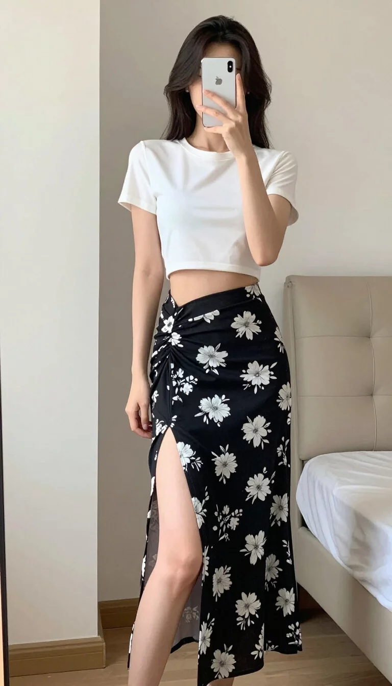 When you pair it with a white mini skirt, the result is a clean and modern aesthetic.