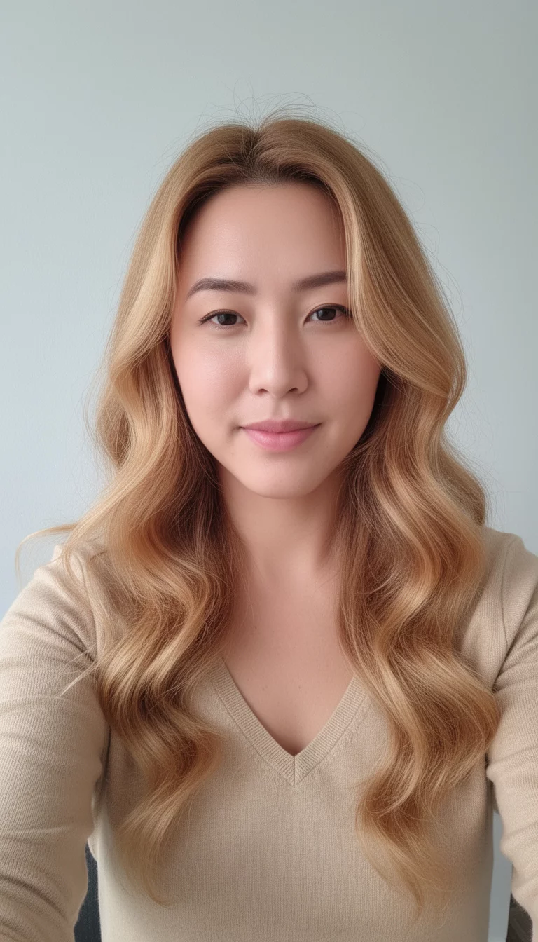 Long waves help the champagne tones flow naturally, giving you a very soft and approachable look.