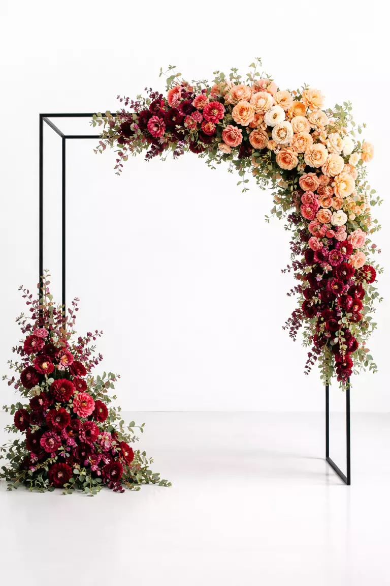 This bold statement piece works best in clean, black tie venues like art galleries or modern hotels where the arch serves as a temporary piece of fine art.