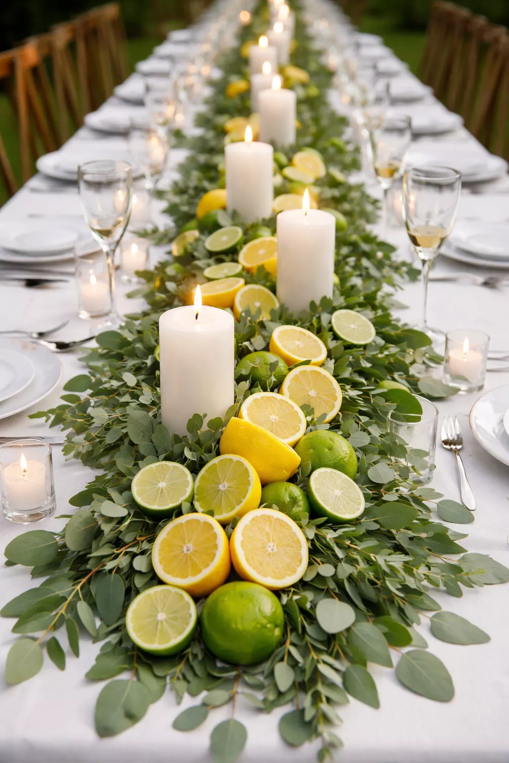 I suggest choosing fruit that matches your wedding palette; blood oranges look stunning for winter, while lemons scream summer elegance.